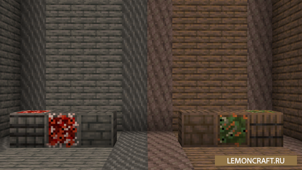 Мод на декоративные бочки Fish In Planks добавляет в игру 4 новых блока, которые похожи на бочки наполненные рыбой. Применить данные блоки можно только в строительстве, в качестве декораций, практической цели они никакой в себе не несут.